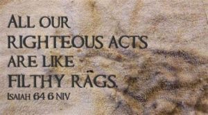The word states that our righteousness is as filthy rags. “But we are all as an unclean thing, and all our righteousness is as filthy rags…” (Isaiah 64:6) MEV. We don’t have any righteousness. “There is none righteous, no, not one; (Romans 3:10) MEV.