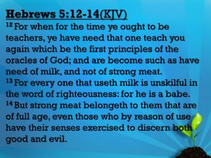- Spiritual Maturity: Hebrews 5:12-14 emphasizes that we should progress from spiritual infancy (needing milk) to maturity (partaking of strong meat).